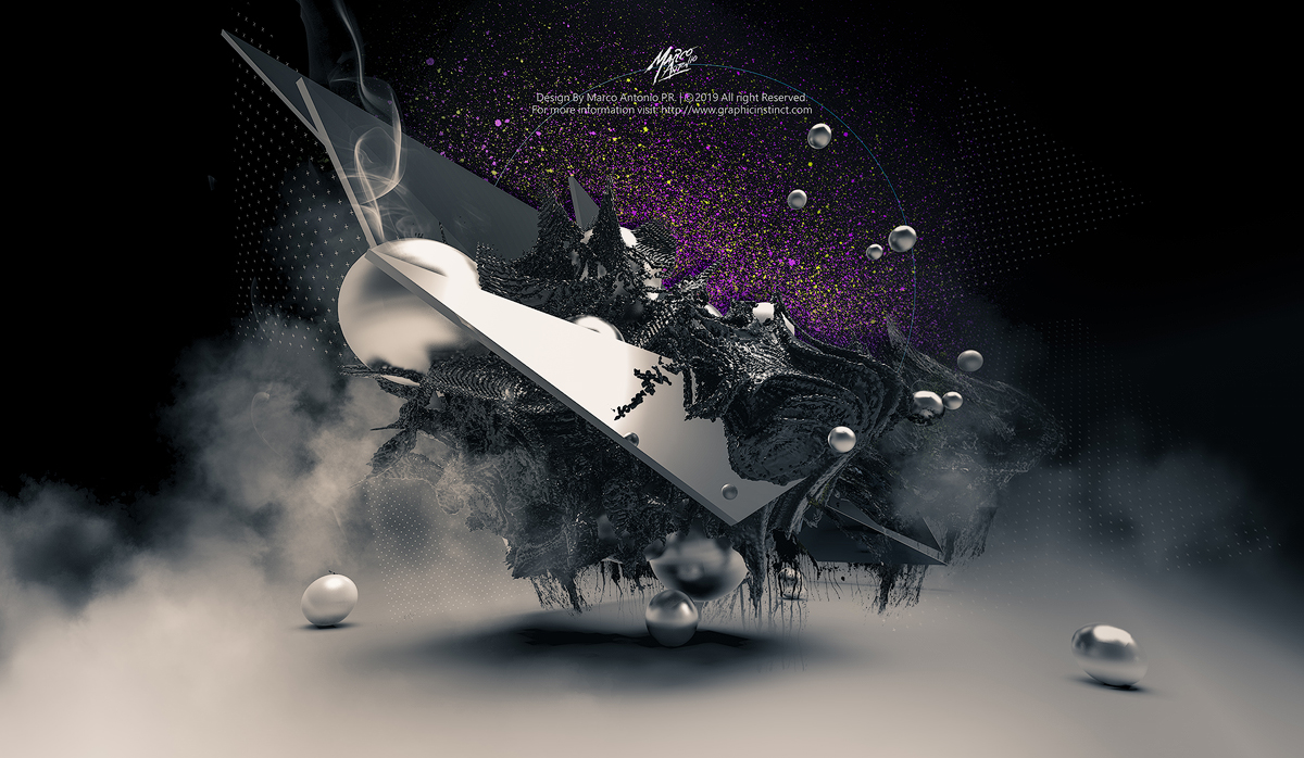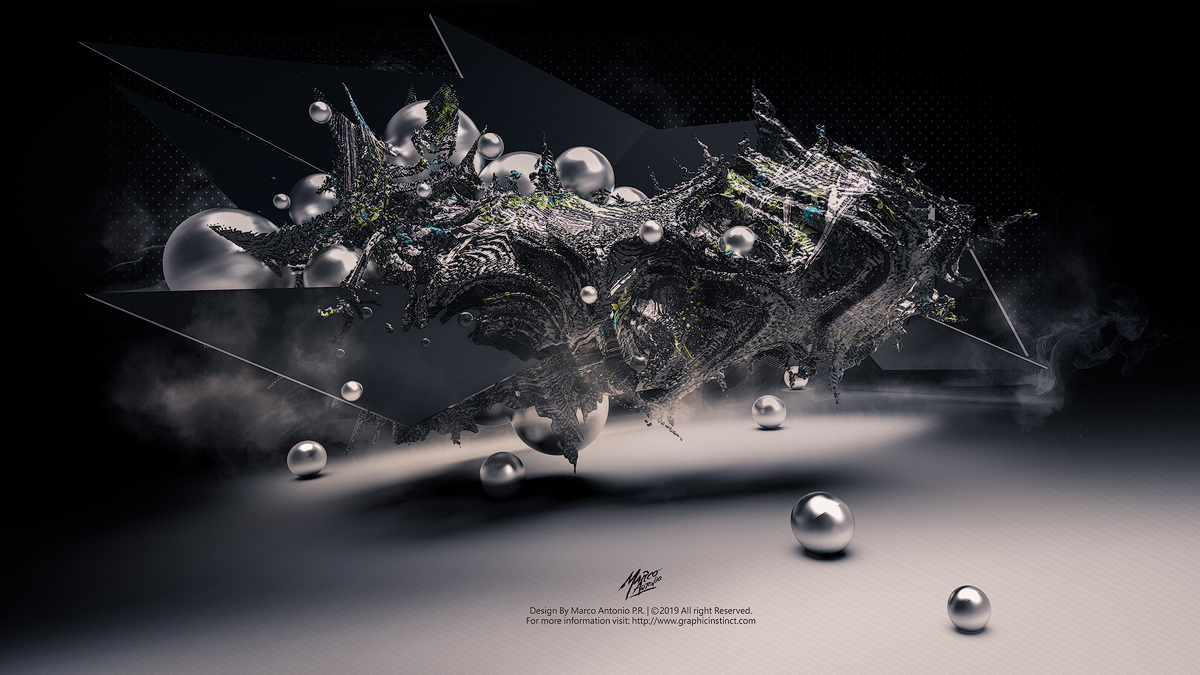 Description: Visual experiment, created with gimp, mandelbulb 3d, inkscape, and rendering in Blender.