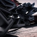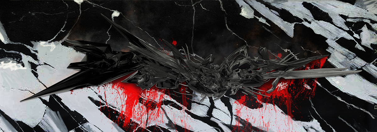 Description: Set of digital illustrations made with blender. Dark colors contrasted with saturated red.