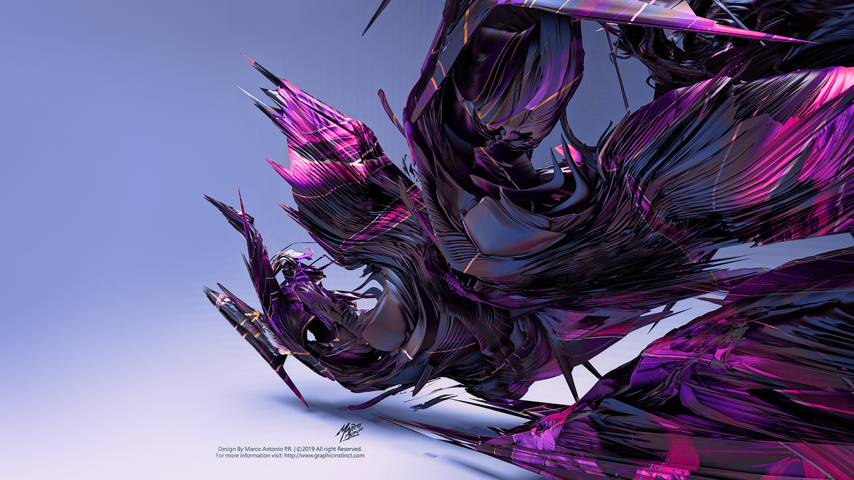 Description: 3d digital illustration, abstract shape generated with blender, post-production made with gimp. Contrast saturated colors.