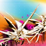 Description: Digital Artwork. Aggressive abstract composition, 3d shapes combined with vector elements and saturated colors.
