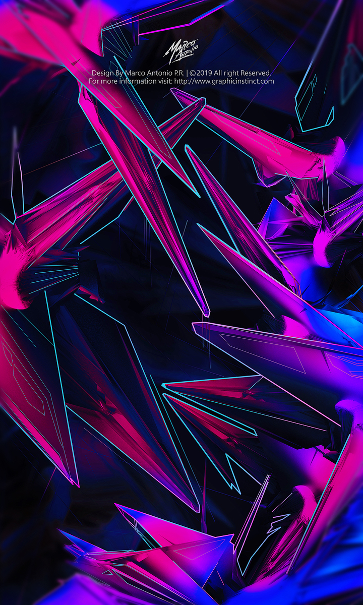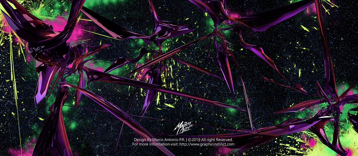 Description: 3d digital illustrations of dark fashion patterns. Contrast colors saturated with abstract shapes.
