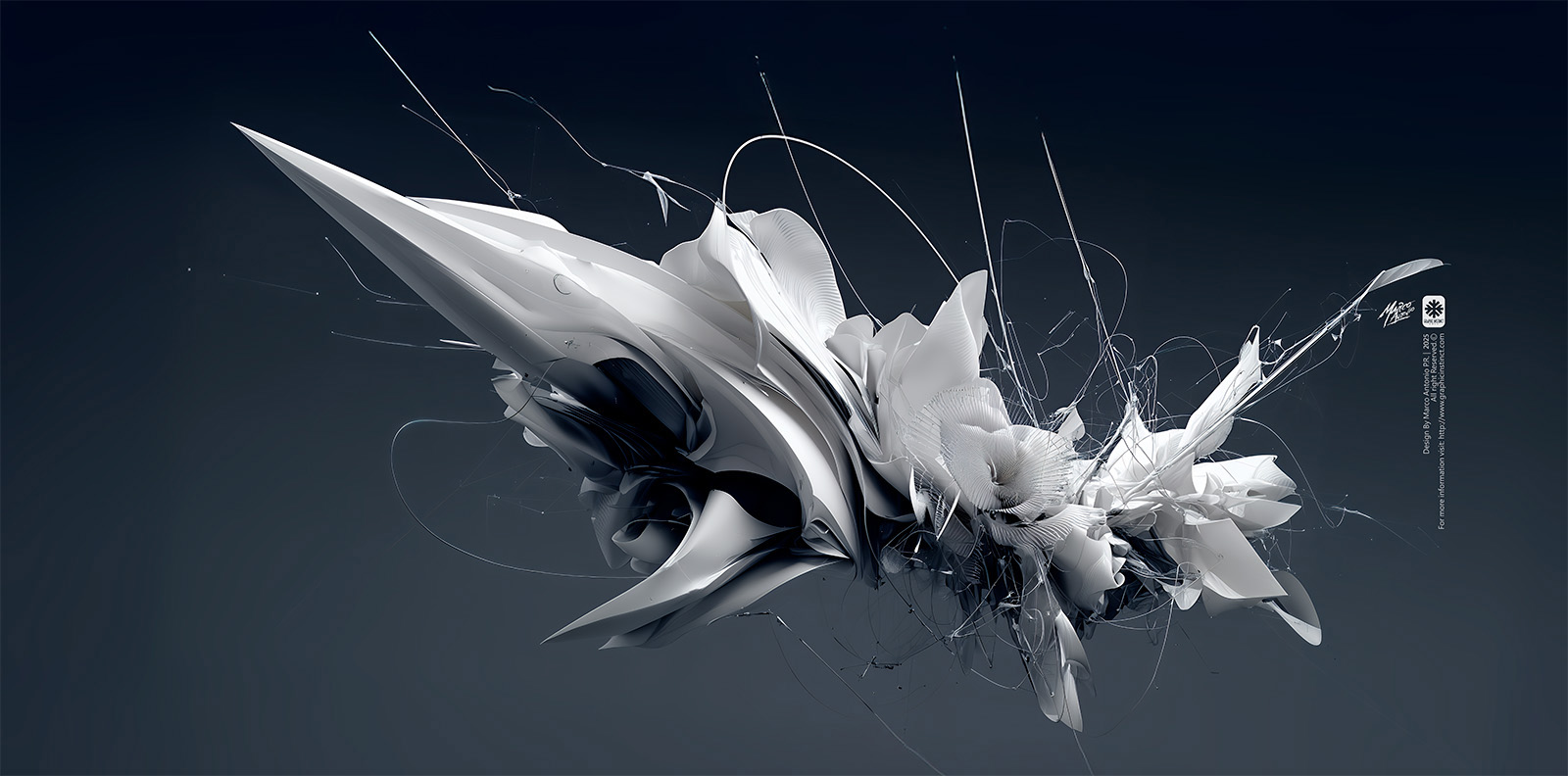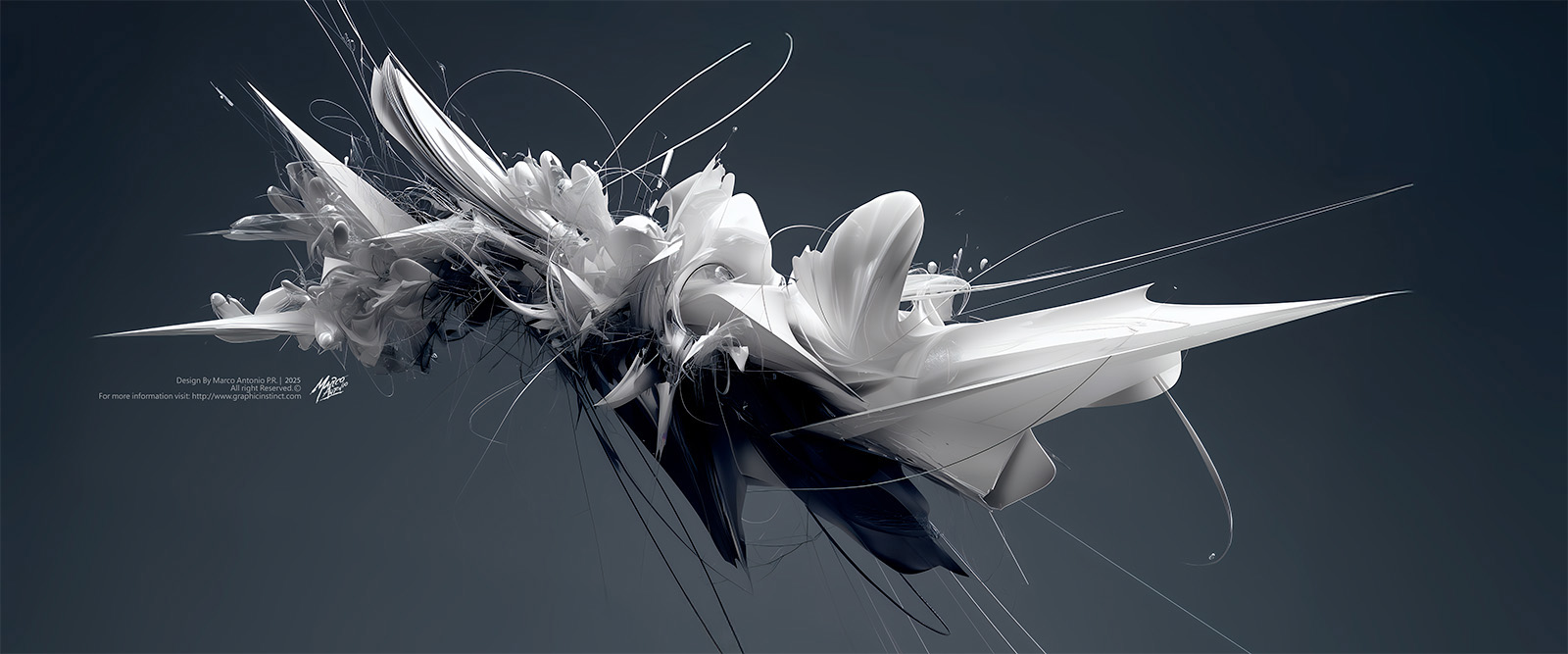 Artistically, this piece resonates with the aesthetics of Bio-futurism and Abstract Expressionism, albeit translated into a digital medium. The complex, interwoven forms recall the organic fluidity found in works by Ernst Haeckel, while the chaotic yet controlled energy echoes the brushstrokes of Jackson Pollock. The digital rendering allows for a precision and smoothness that traditional media might struggle to achieve, highlighting the unique capabilities of contemporary art forms. The stark contrast between the sharp, almost crystalline elements and the softer, flowing forms creates a captivating visual tension, reminiscent of the Baroque period’s dramatic chiaroscuro, reinterpreted through a modern lens. The overall composition, with its central explosion of forms, guides the eye through a journey of discovery, revealing new layers and details with each observation.