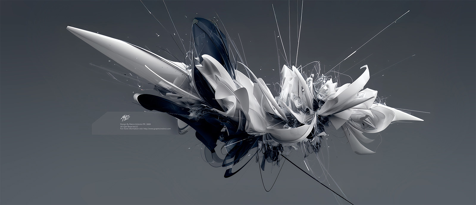 “Artificial Fullness” is a profound digital artwork that masterfully blends the organic with the engineered, creating a visual symphony of contrasts. At first glance, the piece evokes a sense of dynamic motion, as if a complex entity is either emerging or dissolving, caught in a perpetual state of flux. The dominant monochromatic palette, primarily shades of grey, black, and white, serves to emphasize form and texture over color, drawing the viewer’s attention to the intricate details and the interplay of light and shadow.