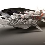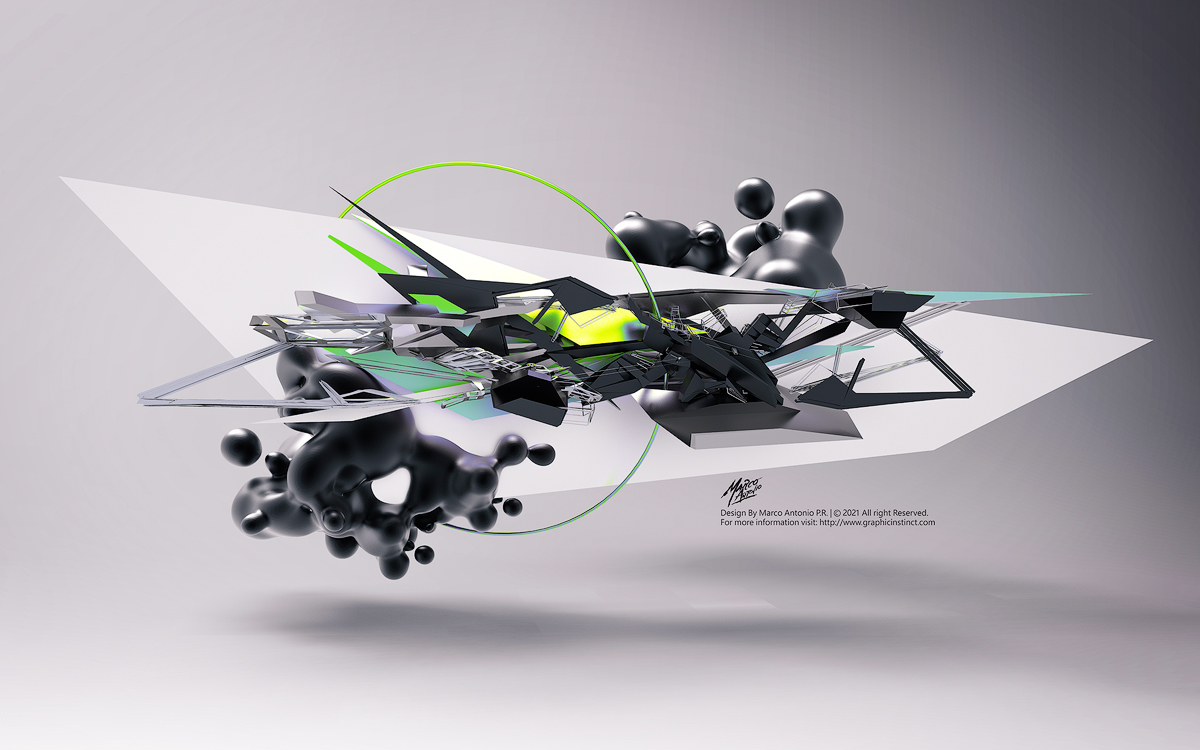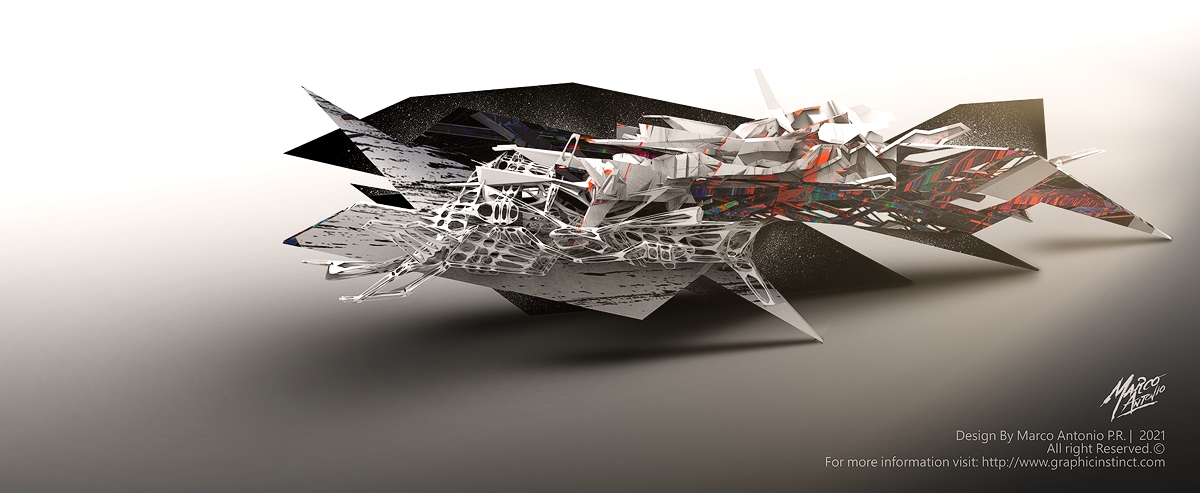 Description: Set of abstract 3d illustrations, made in blender with cycles rendering engine, metallic chaotic shape on a light background.
