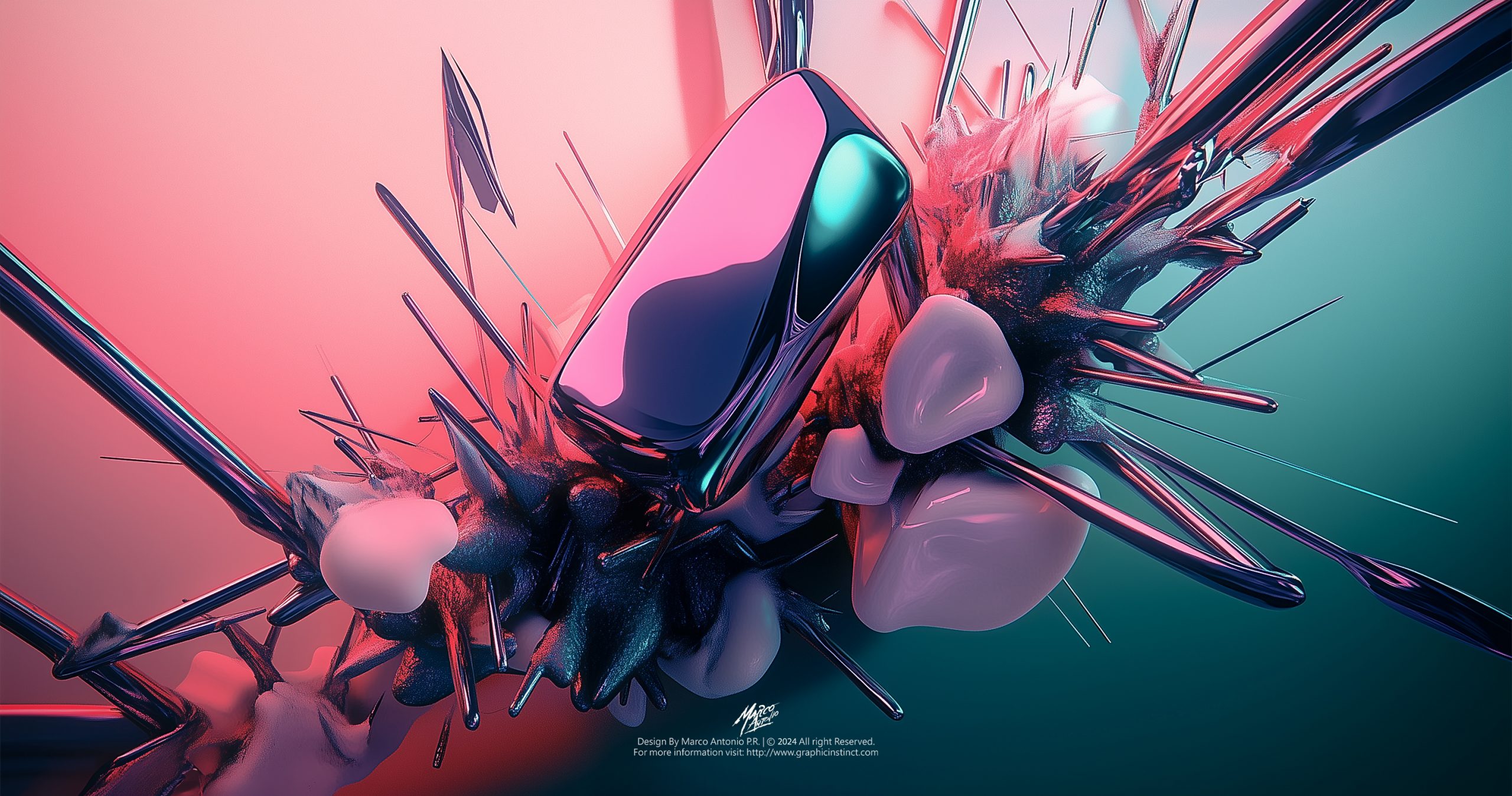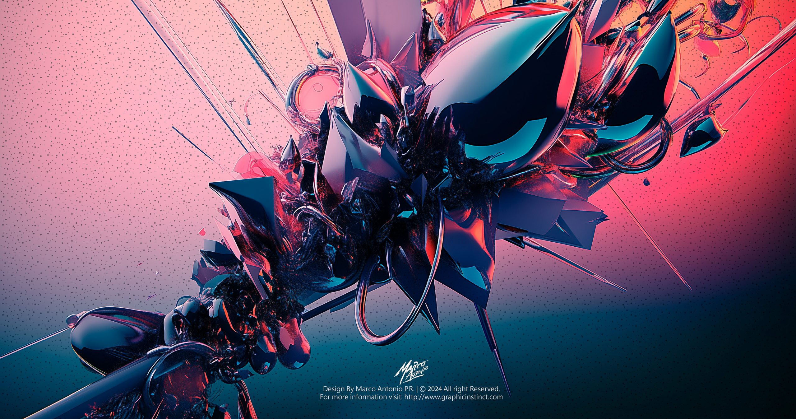 …Chromatic Metamorphosis evokes a transformation where shapes and colors meet in a process of constant redefinition. This encounter between the organic and the industrial represents the dilemma of identity in a world where the natural and the artificial coexist and influence each other. The work suggests an evolution that is simultaneously disruptive and harmonious, where futuristic aesthetics are not an end in themselves, but an invitation to reflect on the future of what we consider essentially human…