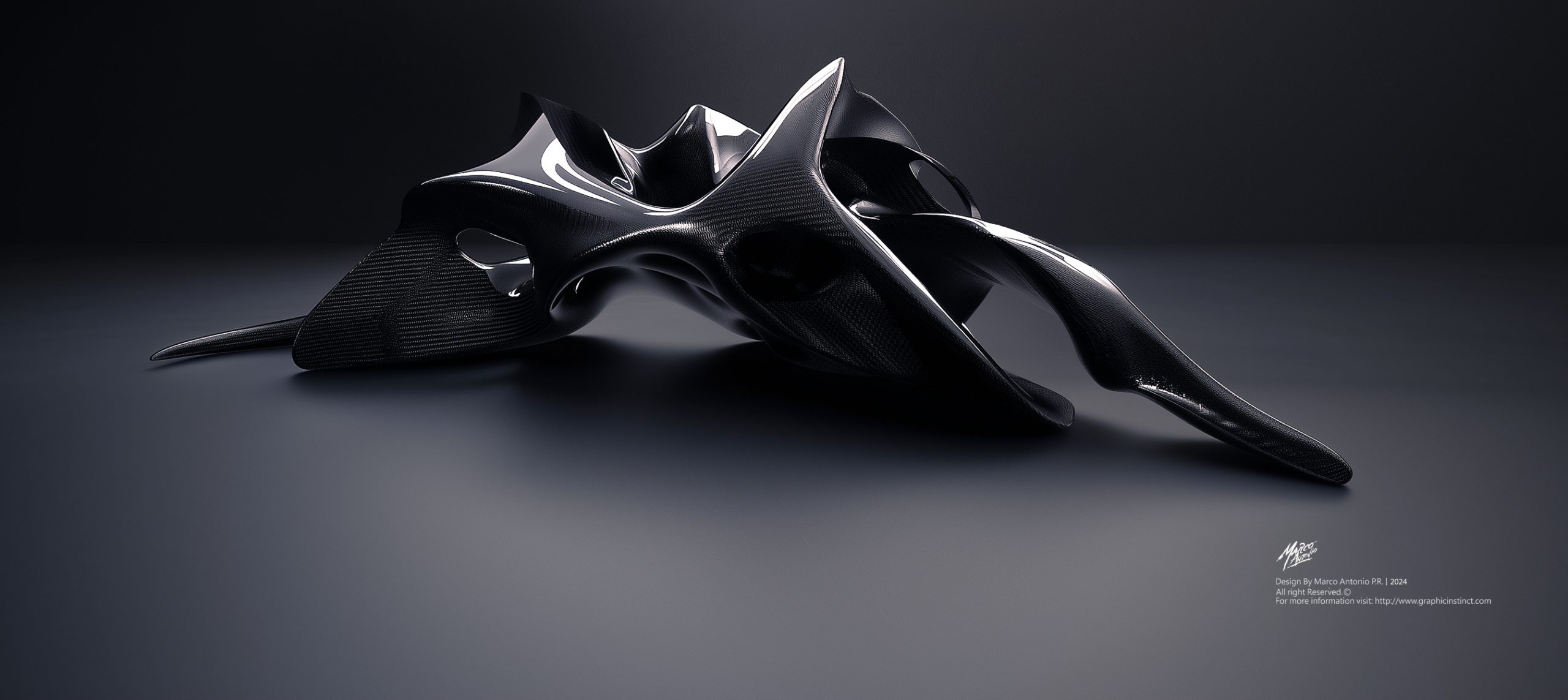 The visual elements may also recall the complex sculptures of Anish Kapoor, where the use of shiny and reflective surfaces distorts spatial perception. Furthermore, the work could be referencing Zaha Hadid’s architecture, with its fluid and dynamic lines, which defy conventional forms and evoke movement within stillness.