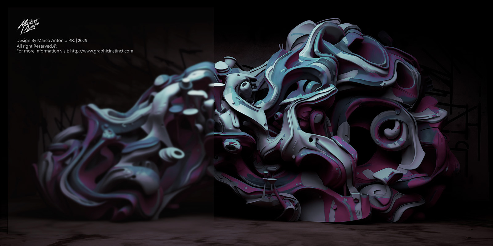 Graffiti, as a form of street expression, has historically been a vehicle for protest, identity, and communication in public spaces. Its transfer to the digital realm opens new possibilities for experimentation with form, color, and composition. In this work, the fluid and dynamic lines, characteristic of graffiti, merge with a vibrant color palette, where fuchsia predominates, creating a sense of energy and movement.