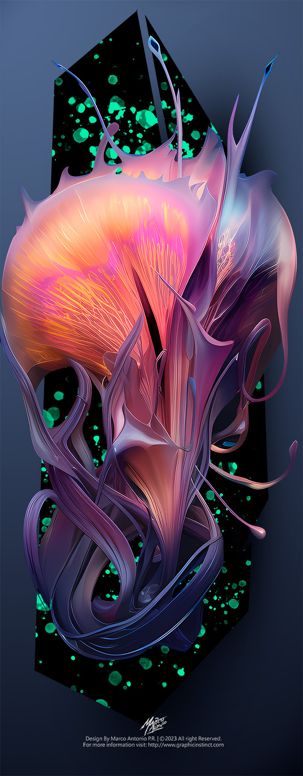 Description: Digital illustration modeled, composed and rendered in Stable Diffusion. Vector elements drawn with inkscape. Small adjustments made with gimp.