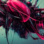 The metallic texture of the forms evokes a torn synthetic skin, with cold reflections reminiscent of the dampness of a post-apocalyptic environment. Digital distortion effects, such as image glitches and interference patterns, suggest a catastrophic failure in the very existence of the visual file. Small fragments of light resemble dying bursts of information, as if the image were struggling to reassemble itself, failing at every attempt.