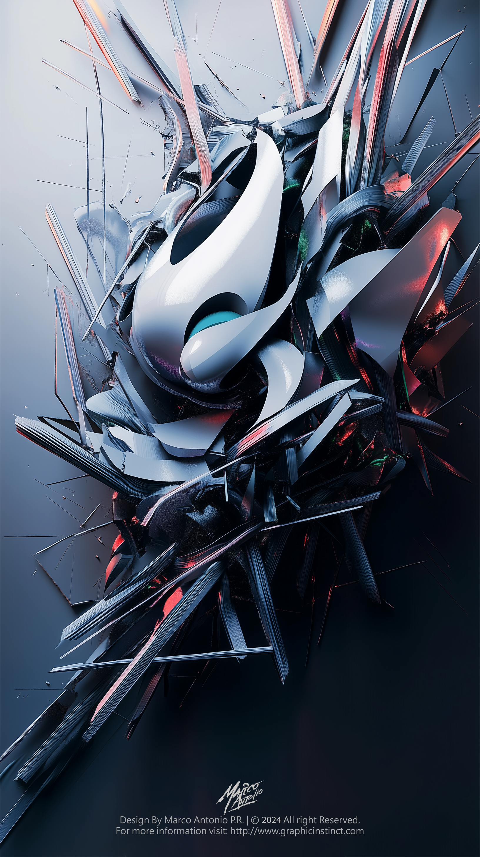 The work seems to be inspired by the tradition of artists such as Zaha Hadid, who challenged conventional forms and explored fluidity in architecture, or even the sculptural structures of Richard Serra, although taken to the digital realm. Fractal Resonance is not just a series of visual works, but a sensory experience that invites the viewer to contemplate the complexity of the modern world and the delicate balance between creation and destruction.