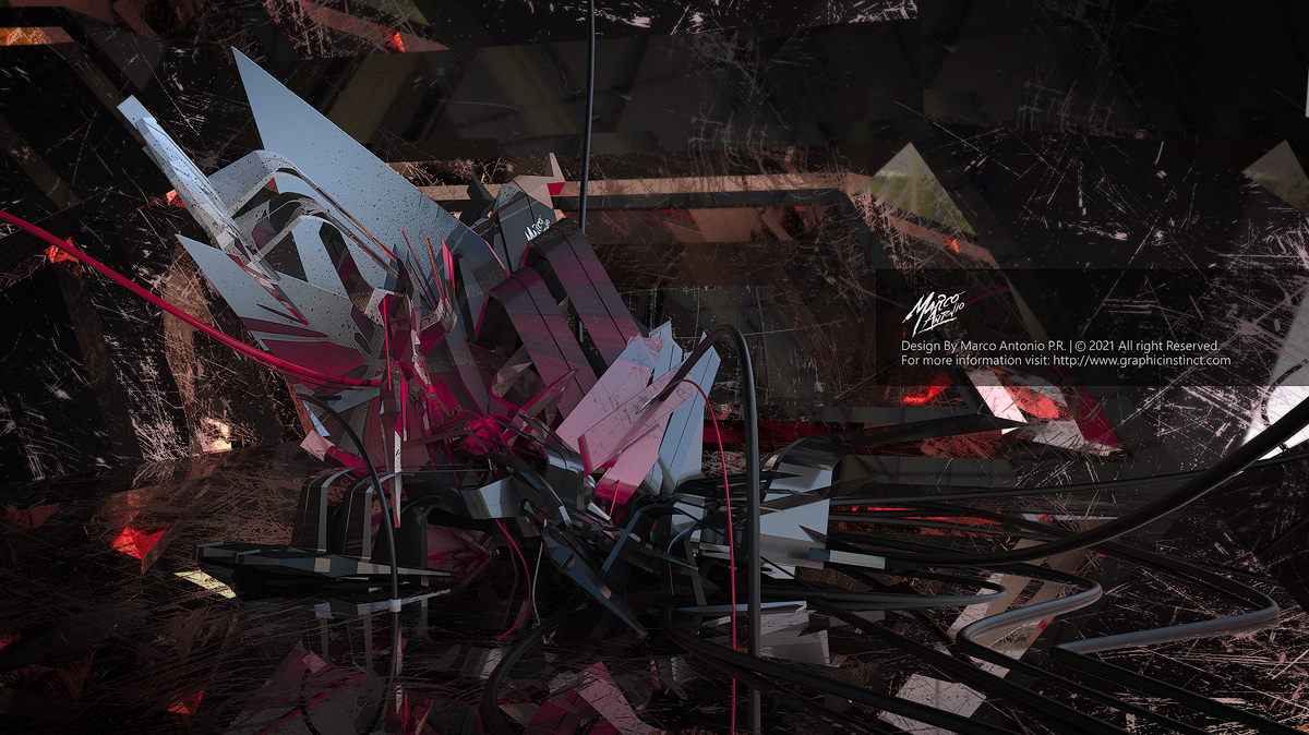 Description: Set of two abstract digital illustrations, modeling and rendering in blender, color curve adjustments in Darktable.