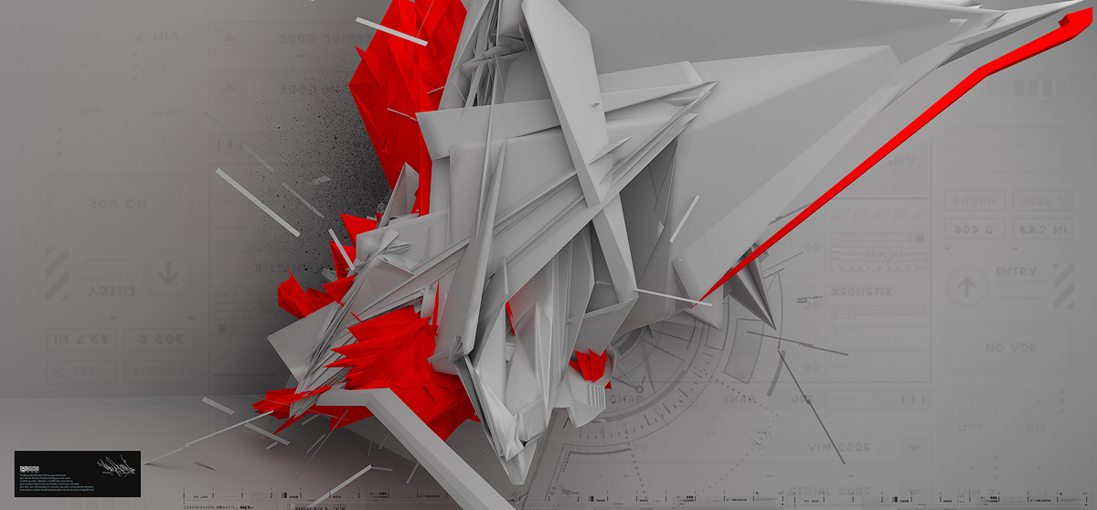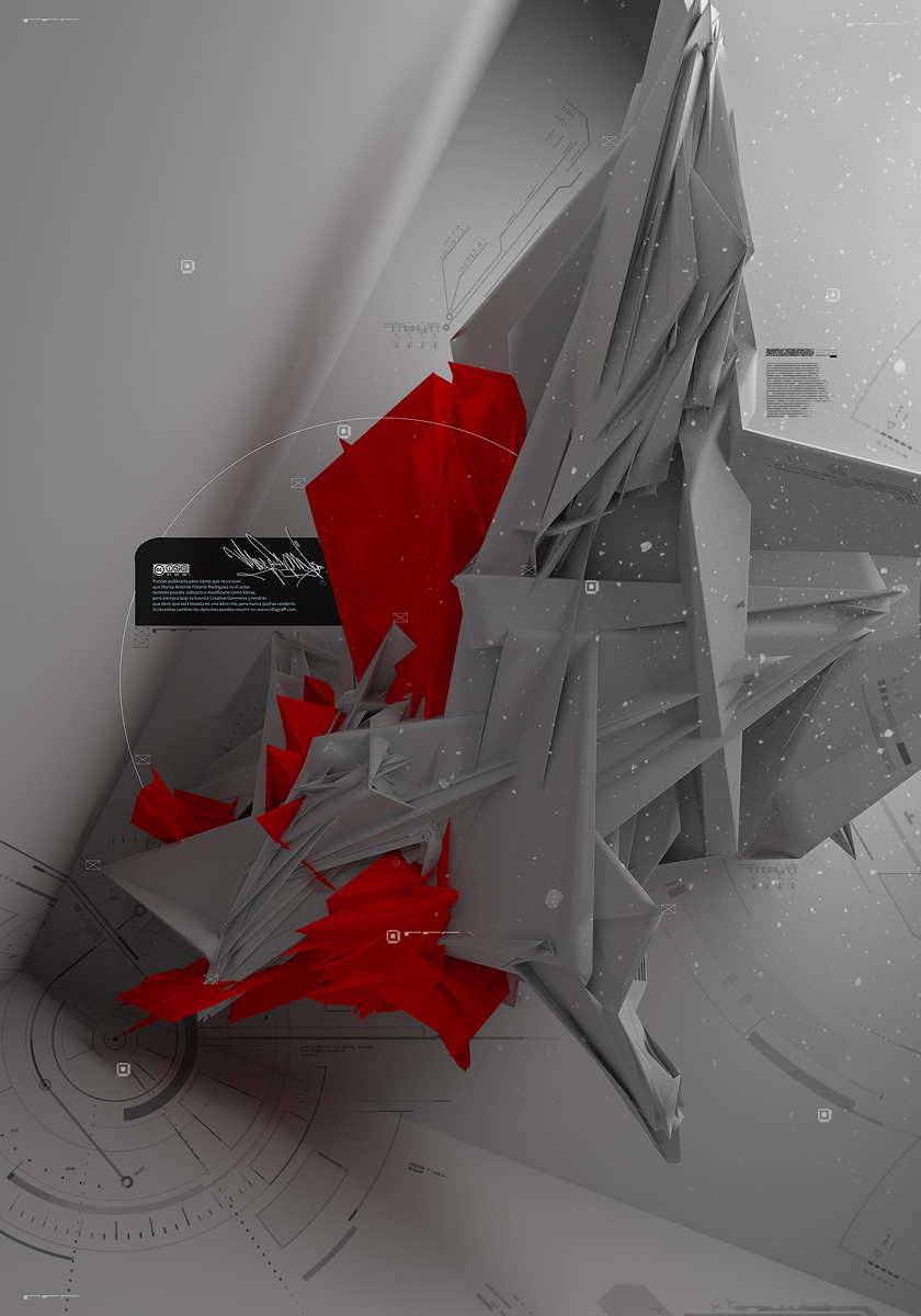 Description: Set of two digital illustrations made in blender in which I include technological vector elements made with inkscape. Perspective viewpoint scenes with light colors and contrasting red tones.