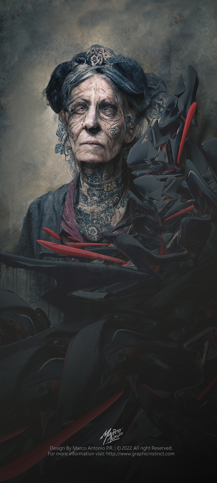 Description: Set of 3 digital illustration modeled, composed and rendered in blender. Faces rendered in midjourney. Small adjustments made with gimp.