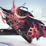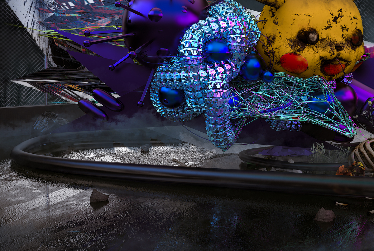 Description: Abstract digital illustration, dark background with contrast saturated colors.
