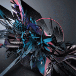 Description: 3d digital illustration modeled and rendered in blender. Abstract shape with saturated colors on contrasting background. Color curve adjustments with gimp.