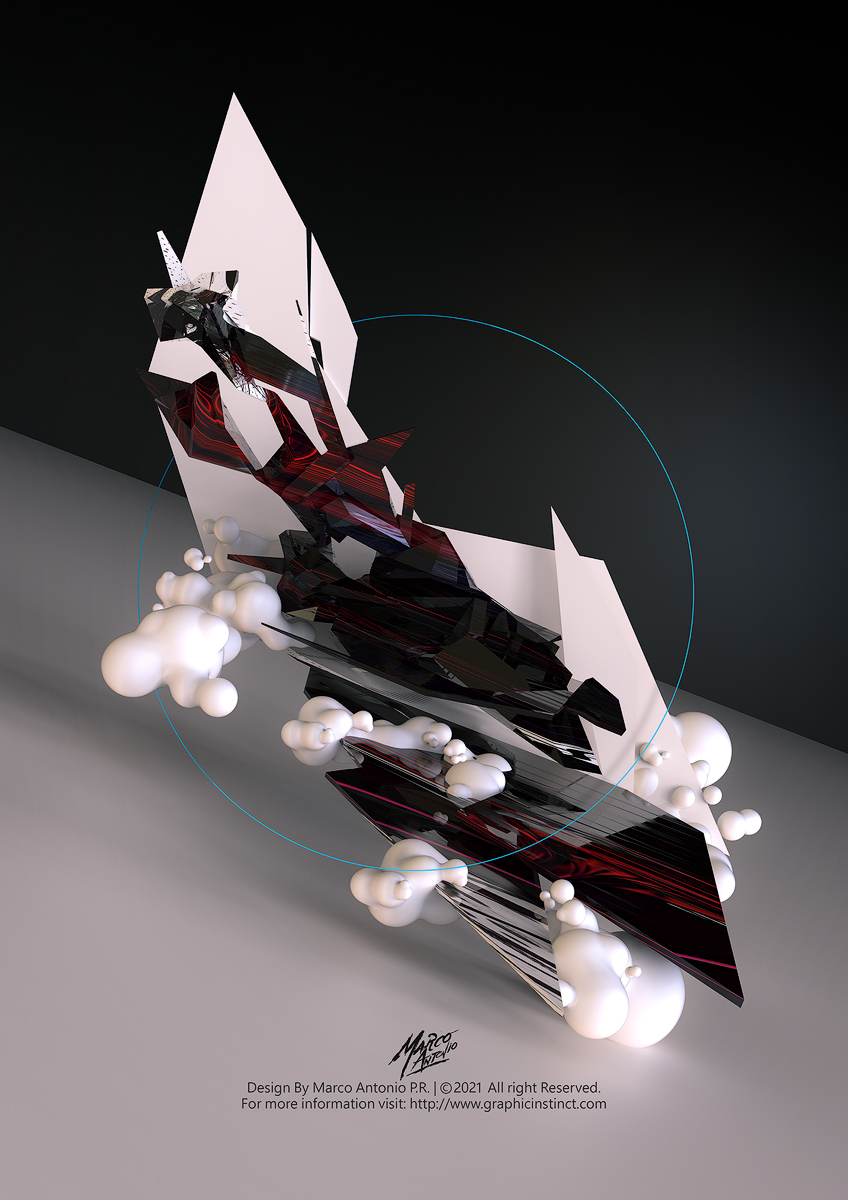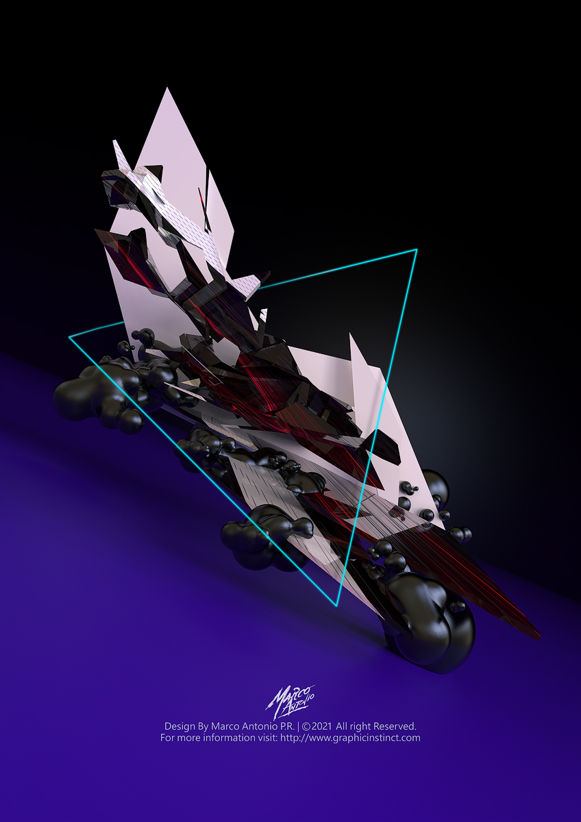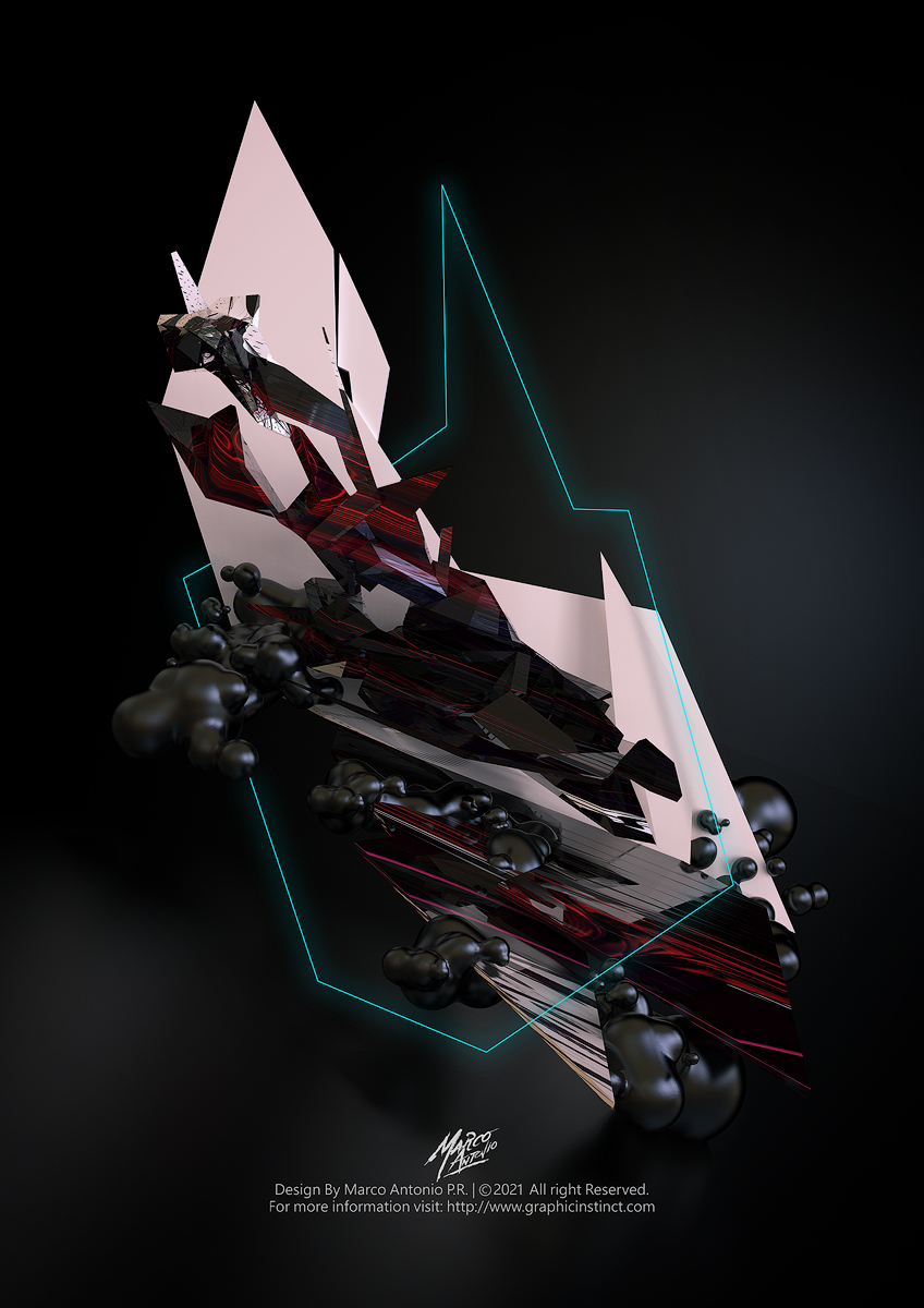 Description: Set of abstract 3d illustrations. Different lighting tests in the chaotic composition scene. Blender + Gimp + Darktable.