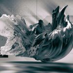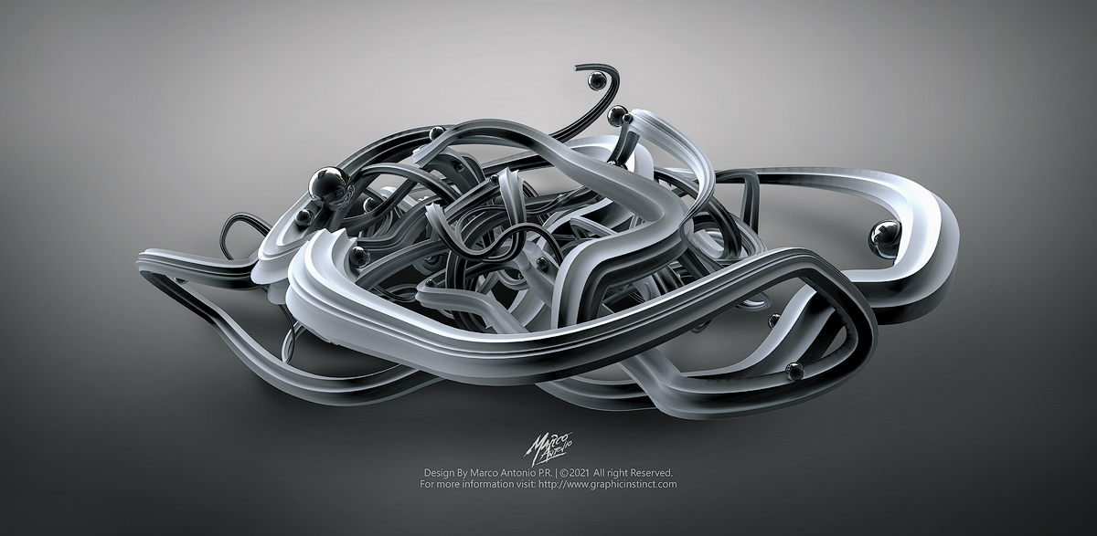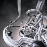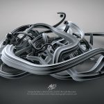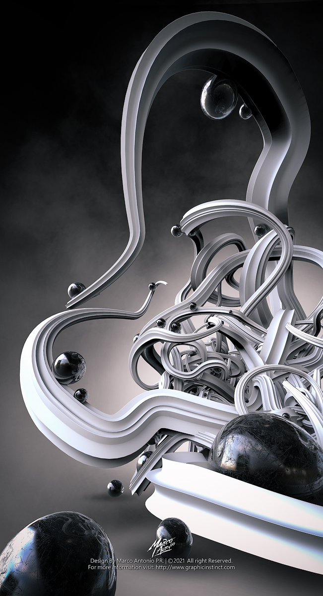 Description: Set of 3d illustrations, black and white, abstract and chaotic composition modeled and rendered in blender.
