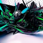 Description: This neo-futuristicdigital composition employs hyper-saturated color theory, dynamic triangular compositionsreminiscent of Futurism, and a complex layering of glitch aesthetics that recall the Deconstructivist movement. The interplay of fluid forms and jagged edges suggests an ode to Zaha Hadid’s parametric architecture, while the metallic surfaces evoke Jeff Koons’ high-gloss sculptures. One cannot ignore the underlying digital Brutalism, where the raw nature of pixel distortions collides with the elegance of cybernetic forms. The calculated disorder echoes the cubist fragmentation of Duchamp, yet it is undeniably a child of the digital epoch, shaped by algorithms and infinite processing power.