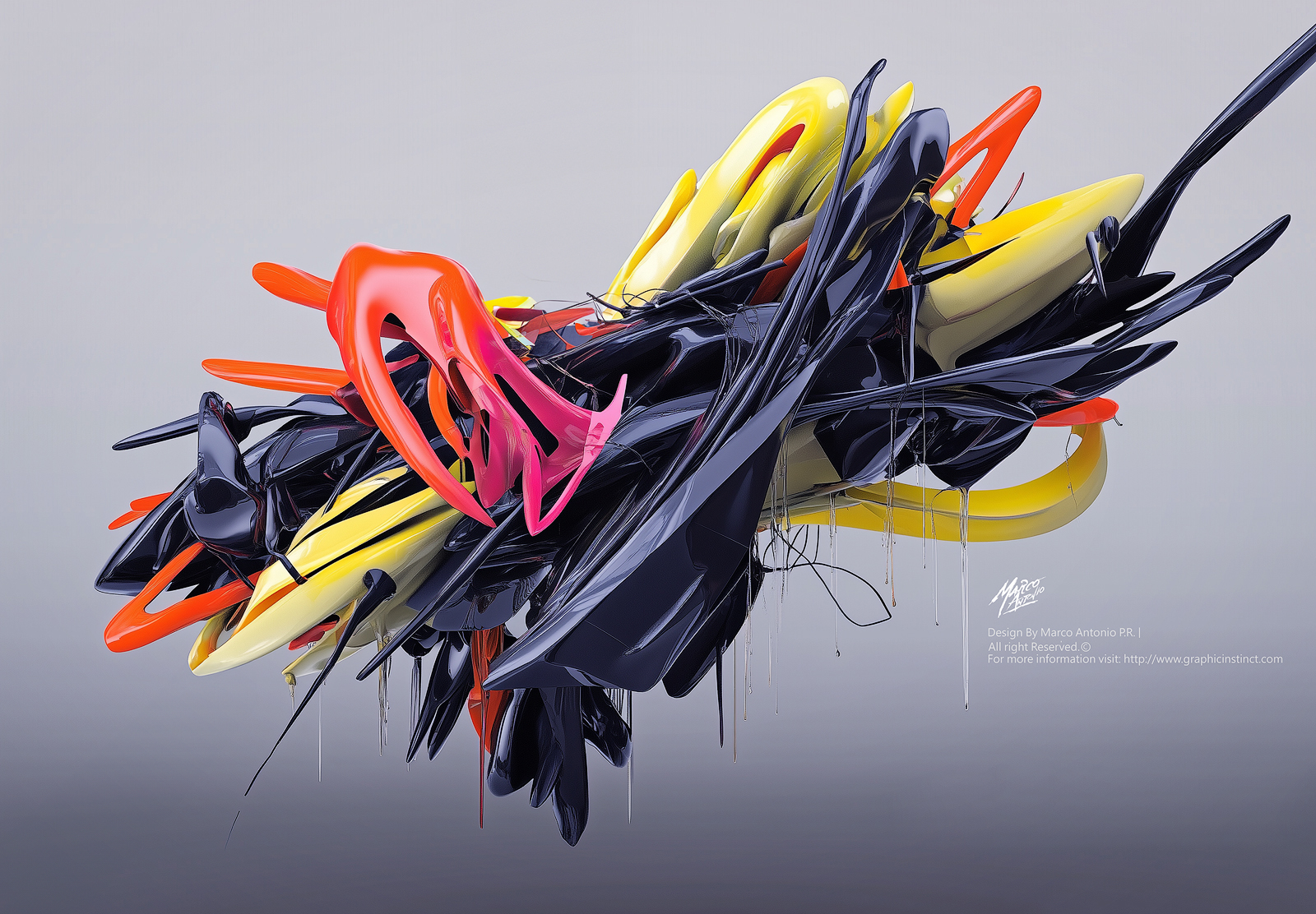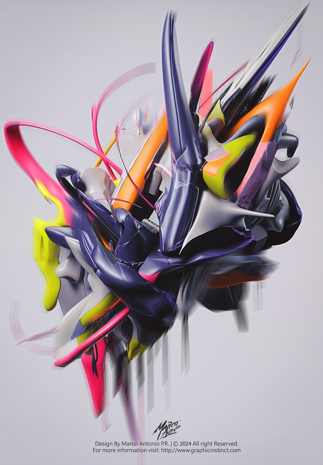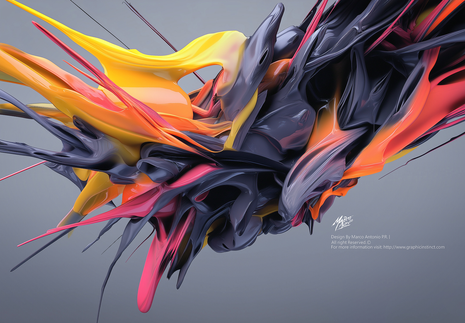 The design seems to take references from the work of Jackson Pollock, with his visual language that challenges linearity and celebrates spontaneous gesture, mixed with a surreal biomorphic aesthetic reminiscent of Joan Miró or even Hans Arp, but transported to a contemporary digital environment. The textures and fluids evoke a parallel with Anish Kapoor’s organic sculptures, where the tension between solid and liquid becomes the protagonist.
