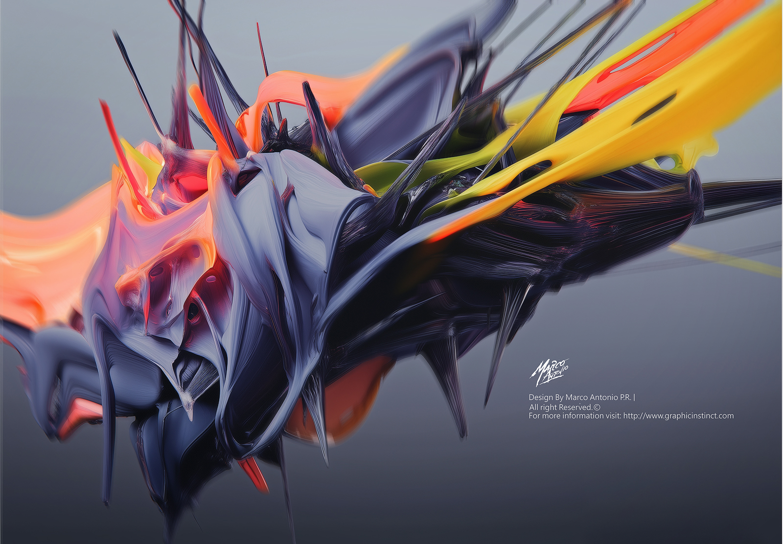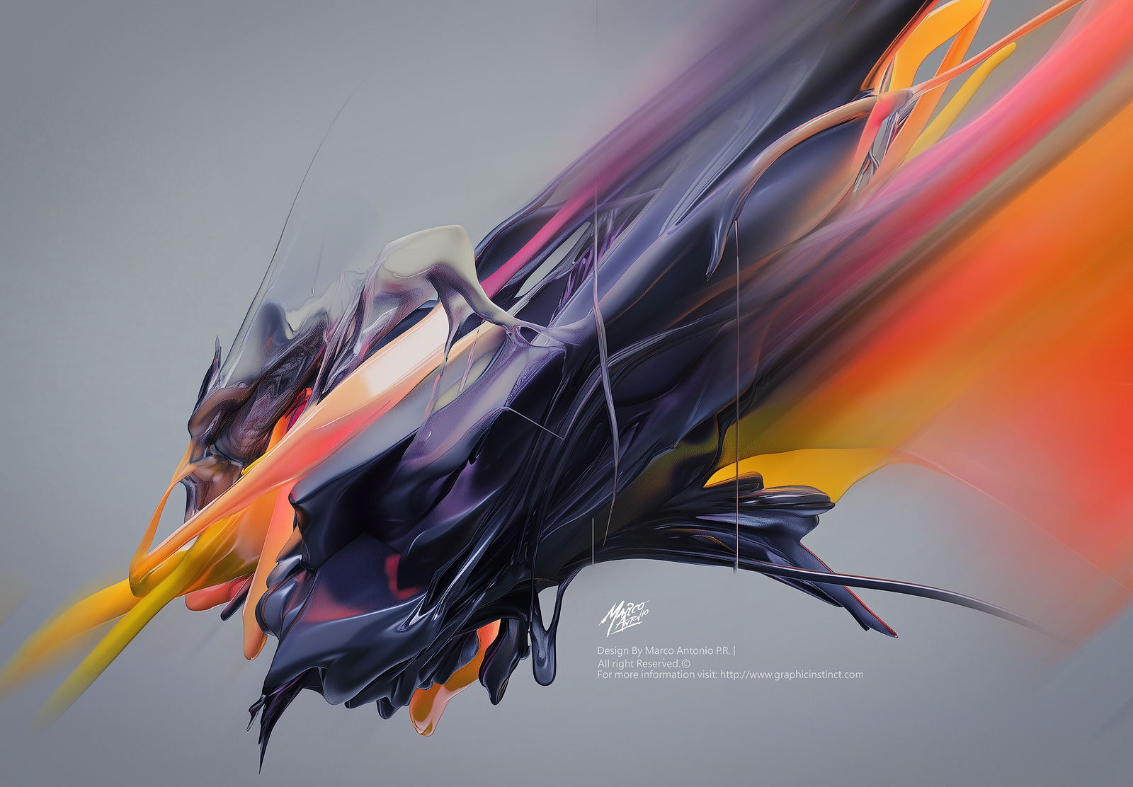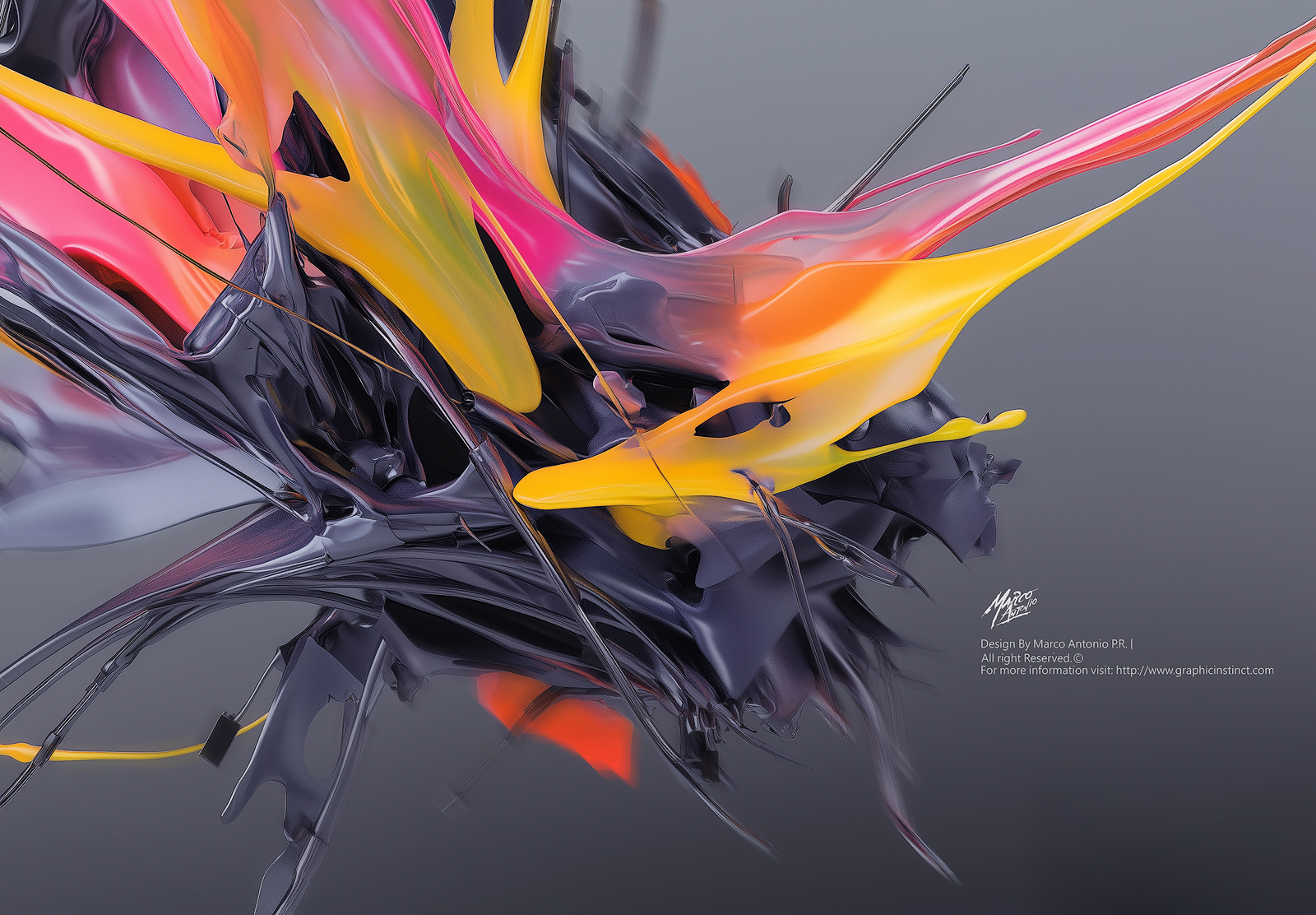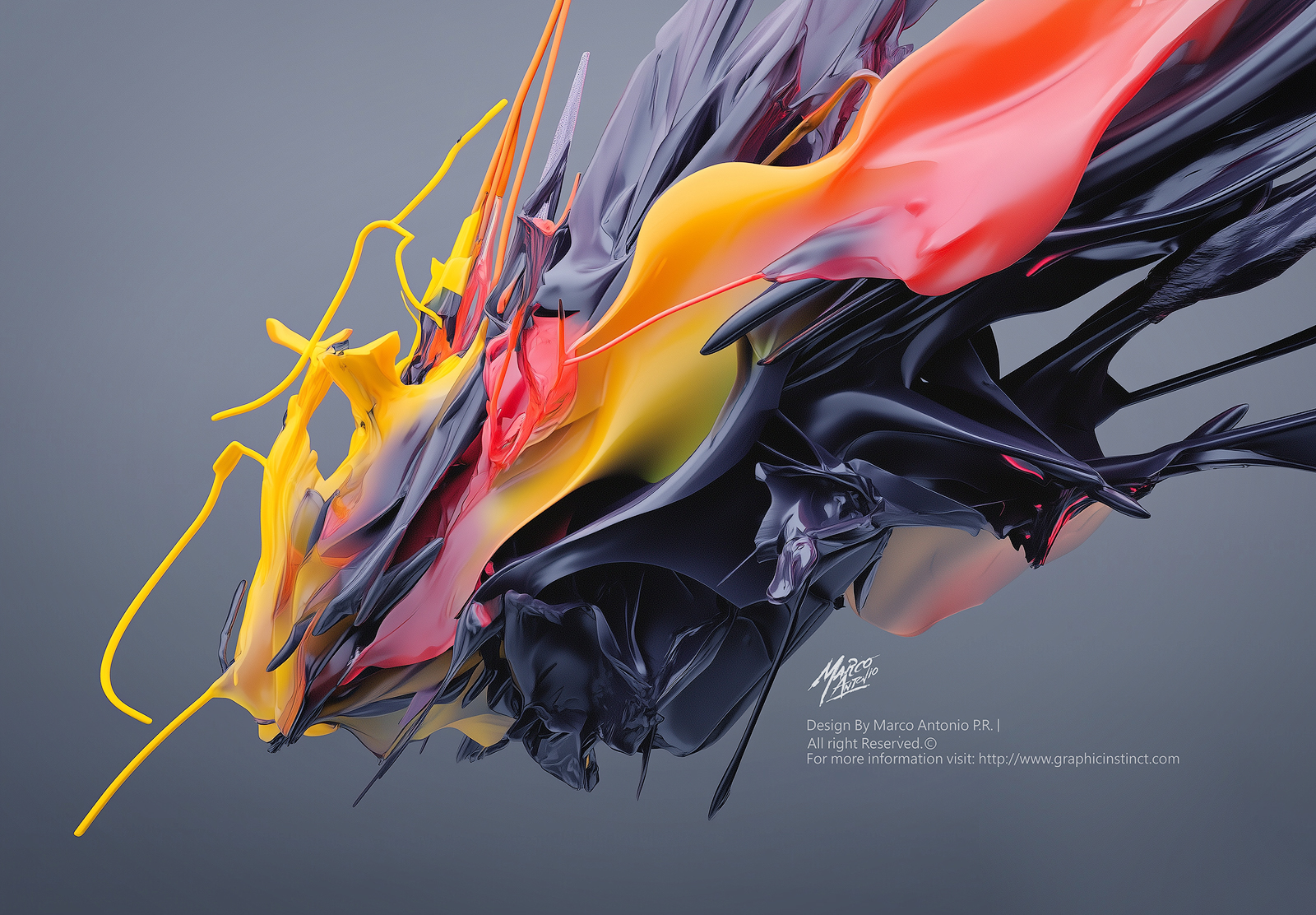 The design seems to take references from the work of Jackson Pollock, with his visual language that challenges linearity and celebrates spontaneous gesture, mixed with a surreal biomorphic aesthetic reminiscent of Joan Miró or even Hans Arp, but transported to a contemporary digital environment. The textures and fluids evoke a parallel with Anish Kapoor’s organic sculptures, where the tension between solid and liquid becomes the protagonist.