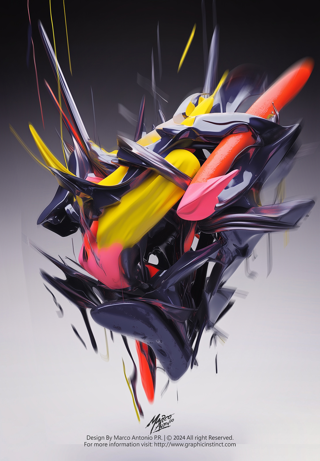 Technical analysis: The work presents an avant-garde and multidimensional approach, combining advanced digital techniques with a sensitivity towards traditional principles of expressionism and abstract art. The predominant use of bright blacks, contrasted with yellow and magenta details, generates a powerful visual impact, suggesting influences from the Fauvist palette in the use of emotional and disruptive colour.